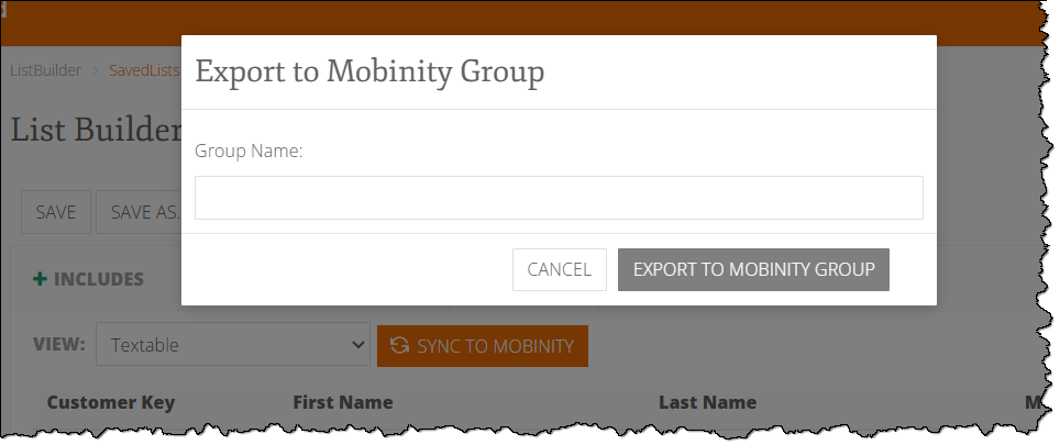 - In the Group Name field, enter the name of the Mobiniti group to which you want to export the list and click Export to Mobinity Group.