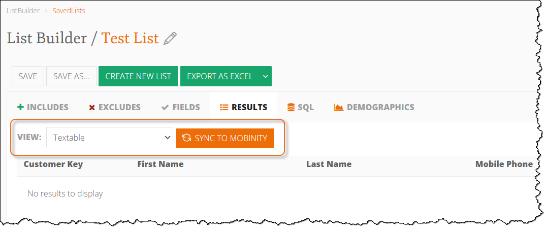 - Create or open the list you want to export to Mobiniti and click the Results tab.