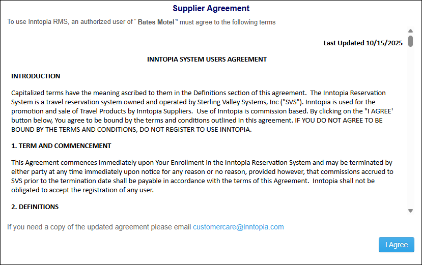New Inntopia RMS supplier accounts are inactive. Once you have added products, and loaded inventory, rates, and availability, you must contact Inntopia Partner Services to activate your RMS supplier account.